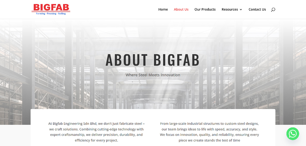 A modern corporate website built to elevate Bigfab’s brand presence, improve service presentation, and deliver a clean, professional digital experience.
